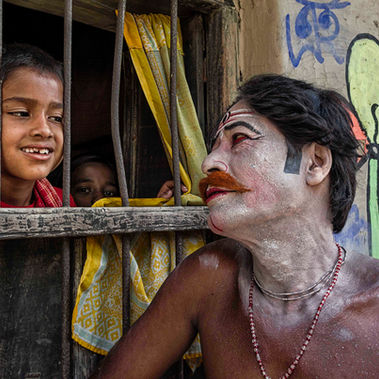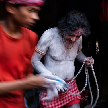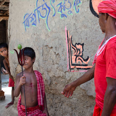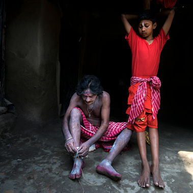Seemed like a war cry, but it was not. It was a loud chant by ill clad godmen from the backward classes draped in red cloth and garlands seeking alms during the last month of the Bengali calendar, "Chaitra" that concludes with the festivities of "Gajan".